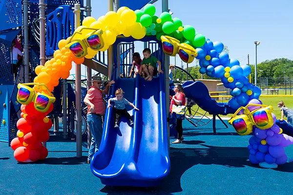 “Although there were many cherished memories made on the previous playground, this new Kids Town installation will inspire new memories, with many accessible play areas, improved supervision qualities, and a face-to-face swing that allows parents to capture live video of their child swinging to share with family and friends.”