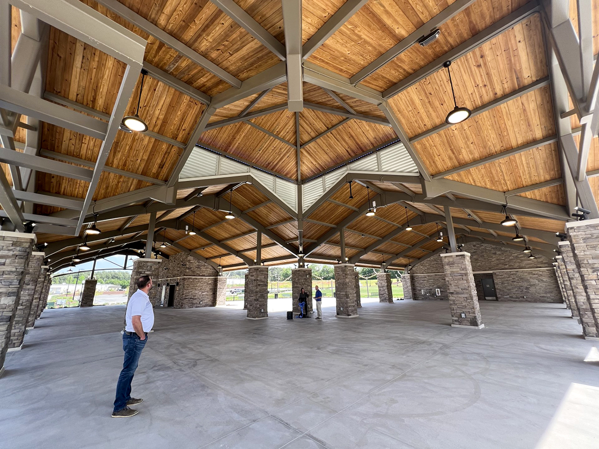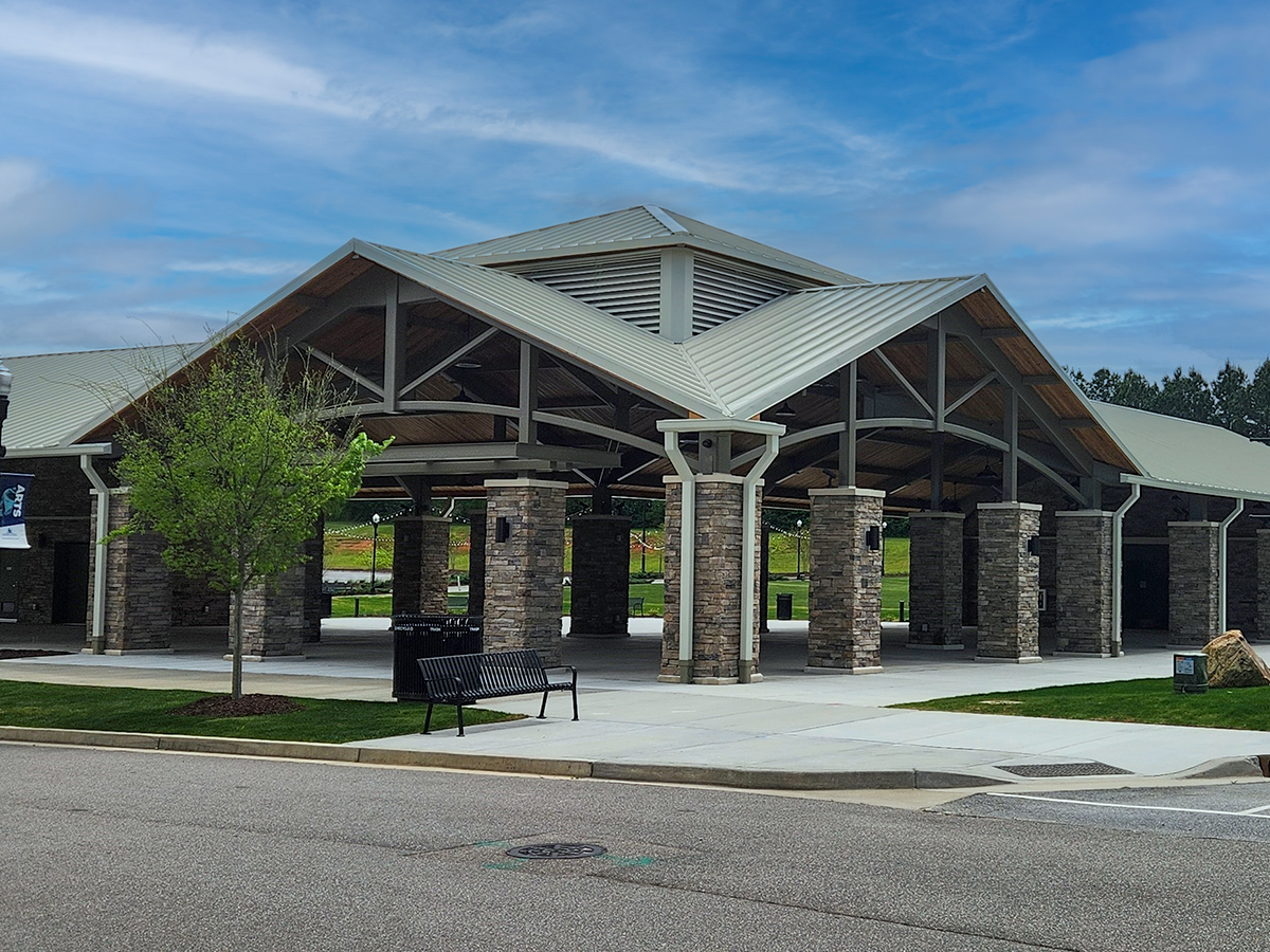 Working alongside Duckworth Development, Bliss Products and Servcies and our North GA Sales Rep, Adam Schmansky, proudly contributed to the creation of a stunning new pavilion in Evans, GA! Manufactured by Cedar Forest Products, this pavilion boasts a striking 49′ x 129′ rectangular steel design with an open gable and 10′ eave height.