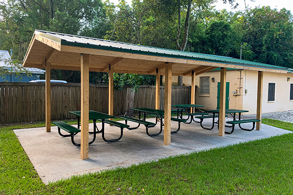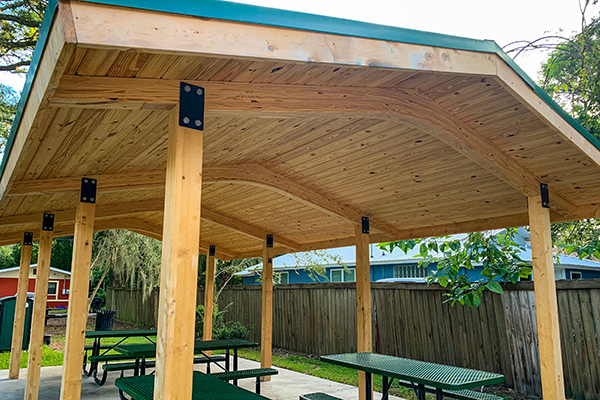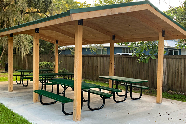 Bliss Products and Services, in collaboration with Cedar Forest Products, proudly installed the remarkable low pitch beam shelter in Sharmie Ffar Park, Gainesville, FL, during the summer of 2020. This project showcases our expertise in crafting exceptional outdoor structures. The shelter, with its concrete floor and cedar construction, exudes durability and elegance.